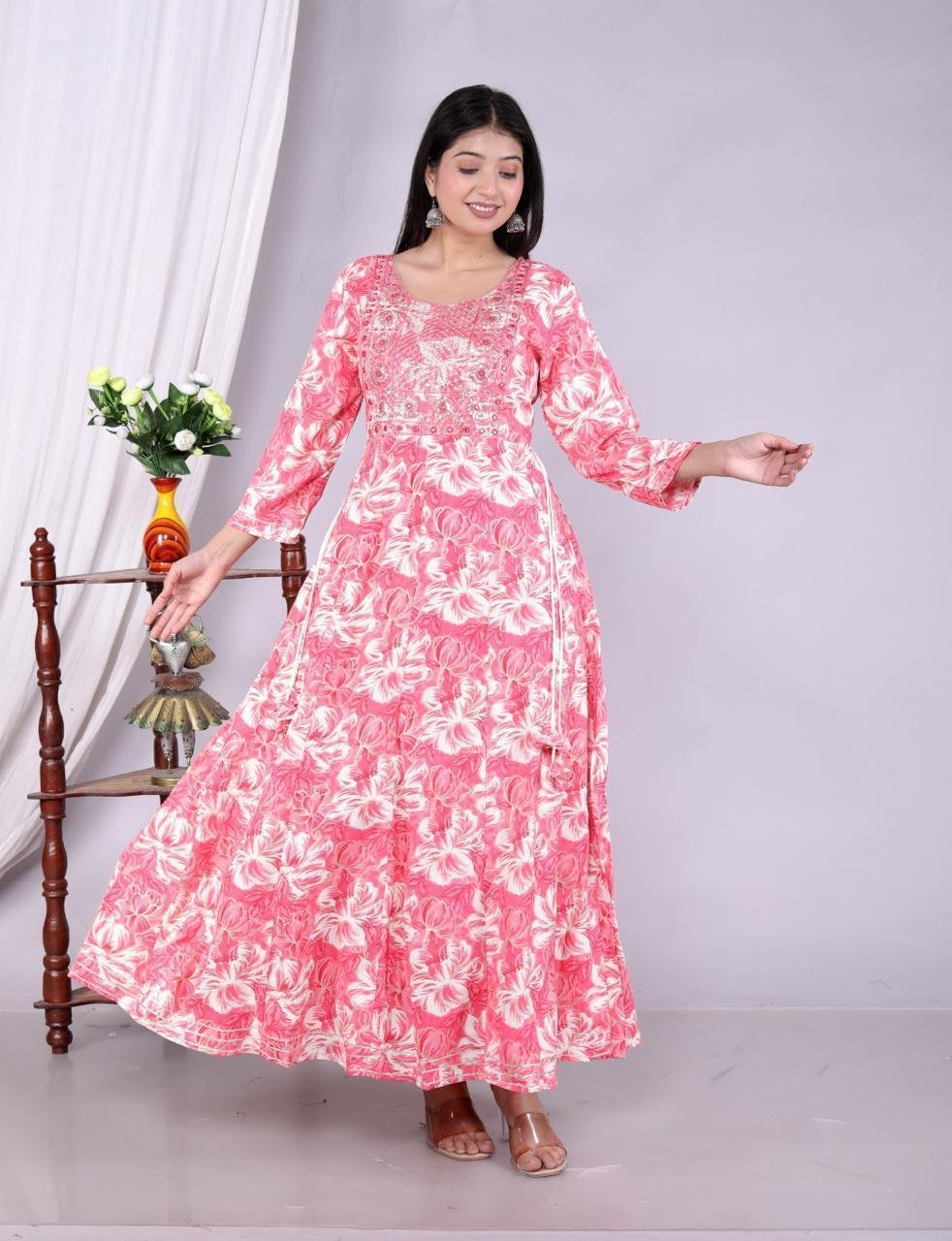 Rochie lungă boho, feminină și rafinată, cu imprimeu floral delicat și broderie albă pe piept. O alegere elegantă pentru zilele însorite sau momente speciale.